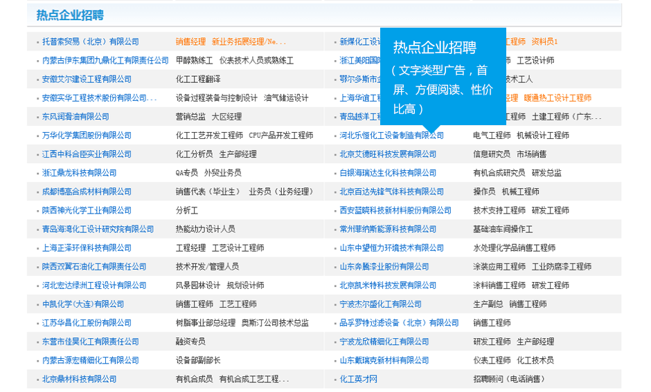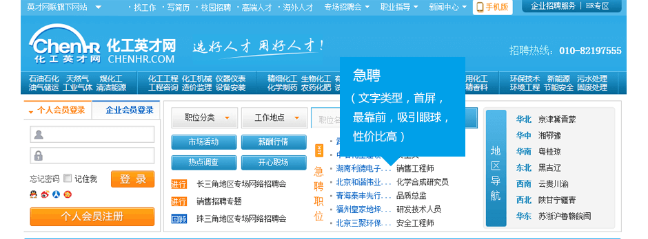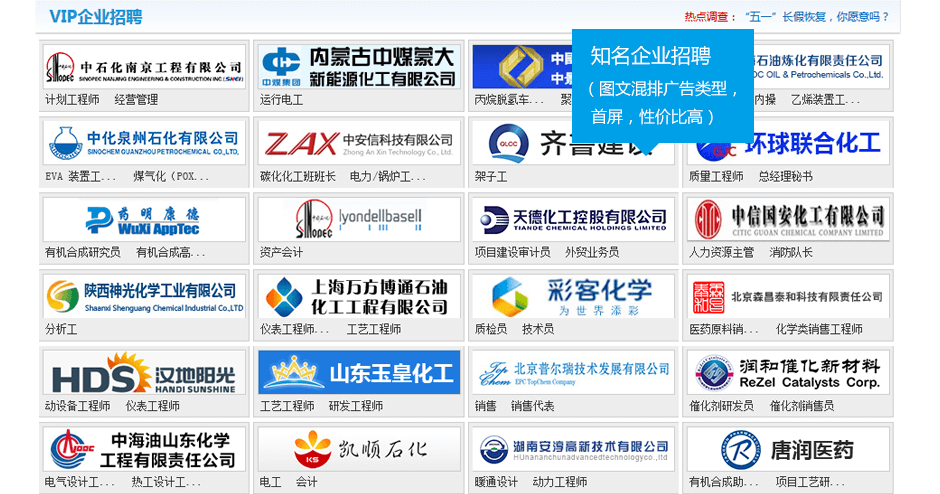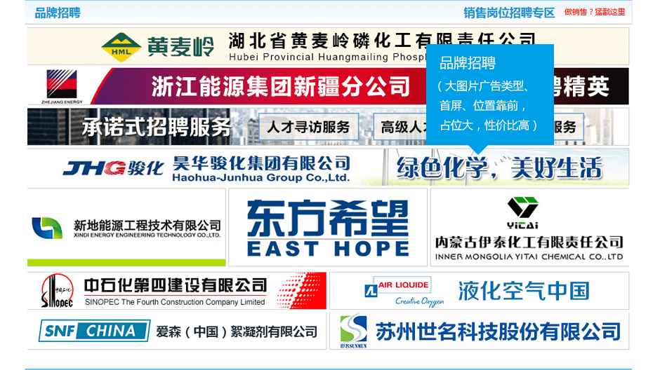 移動端品牌招聘、熱點招聘、知名企業(yè)招聘等廣告類型,有效提升招職位的關(guān)注度。